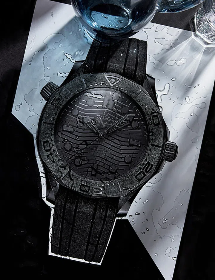 搭载自动上链至臻 天文台同轴机芯、43.5mm陶瓷表壳、 橡胶表带
