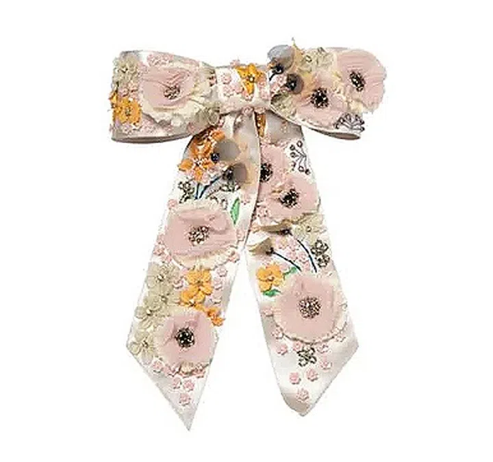 纽约高档发饰品牌Jennifer Behr 创立于2005年,品牌的这款发夹采用真丝材质,每个花卉都以手工缝制而成,浪漫柔美的风格让日常造型更添精致感。