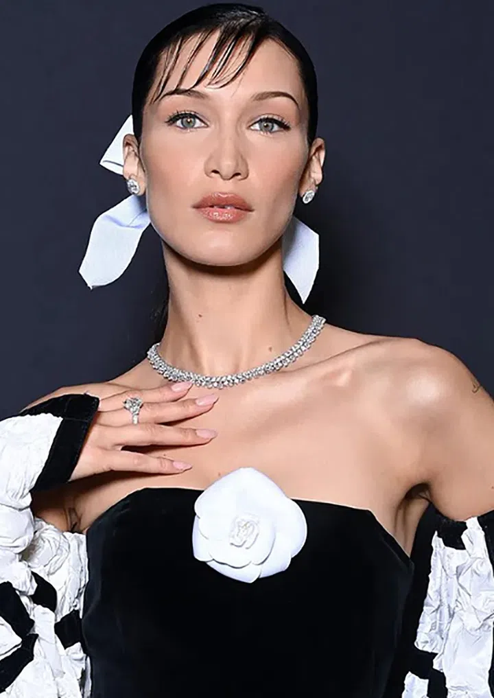 Bella Hadid以蝴蝶结发饰搭配Chanel的vintage造型(图 Chopard)