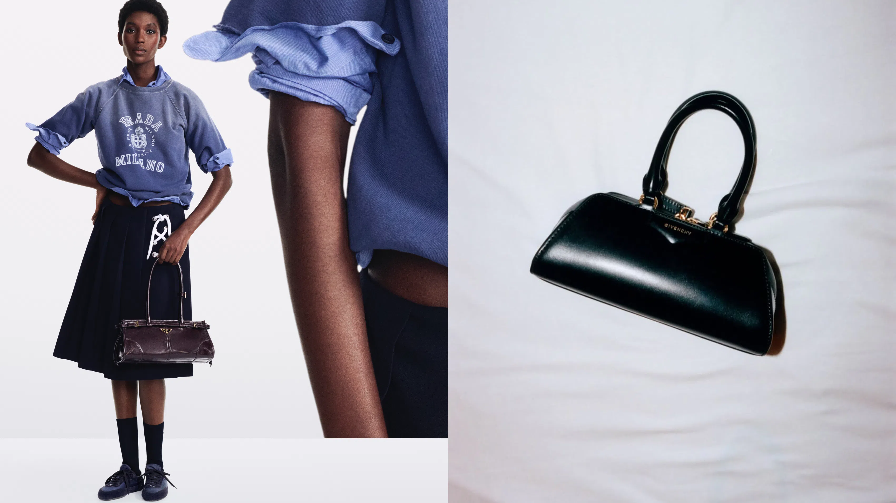 East-West手袋以修长横向的比例为特点,拉长整体线条,视觉上更显轻盈(图:Prada及Givenchy提供)