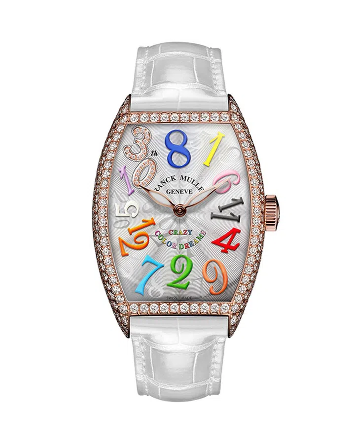 FRANCK MULLER Cintreé Curvex Crazy Hours 30th Anniversary搭载双向旋转自动上链机芯、镶钻表盘、镶钻玫瑰金表壳、鳄鱼皮表带三十周年纪念版腕表