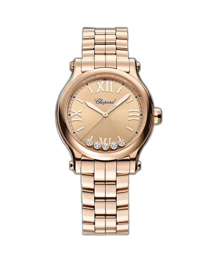 1993年品牌首度将精钢材质和钻石结合,打造Happy Sport运动腕表。表盘上的钻石沿承Happy Diamonds的精神,旨在以无拘无束的灵动钻石颂扬自由精神,鼓励女性乐享生活。上方这款Happy Sport新表款,采用品牌自行研发的09.01-C自动上链机械机芯,整体采用优雅玫瑰金色调,令腕表更具珠宝魅力。