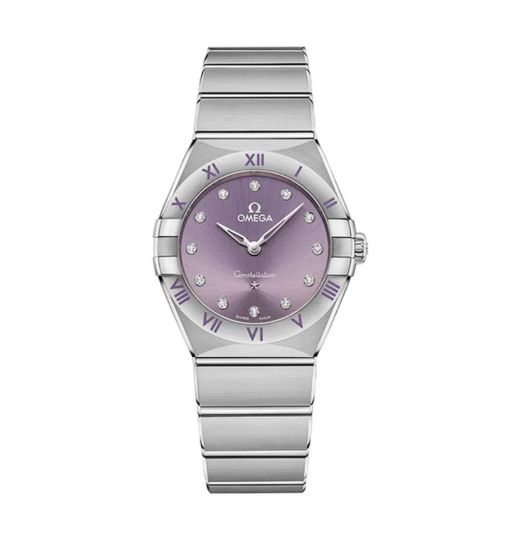 Omega全新28mm表径Constellation系列腕表,添加4款柔美粉色系色调:Blush Rose、Patchouli Blossom、Celestial Blue及Green Matcha。为了配合表盘颜色,品牌还在表圈上也镌刻同样色彩的罗马数字,令腕表外观更显甜美。