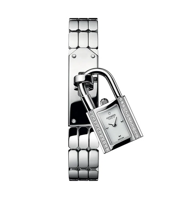 诞生于1975年的Kelly腕表,它的挂锁灵感来自由Robert Dumas于1930年代设计的手袋(Kelly手袋的前身)。今年,品牌以多种材质和元素演绎该表,包括精钢、玫瑰金,镶钻及无钻,珍珠贝母及漆面表盘。另外,该“挂锁”还可穿进品牌特别设计的小牛皮及鳄鱼皮套中,变成一款时尚项链佩戴!