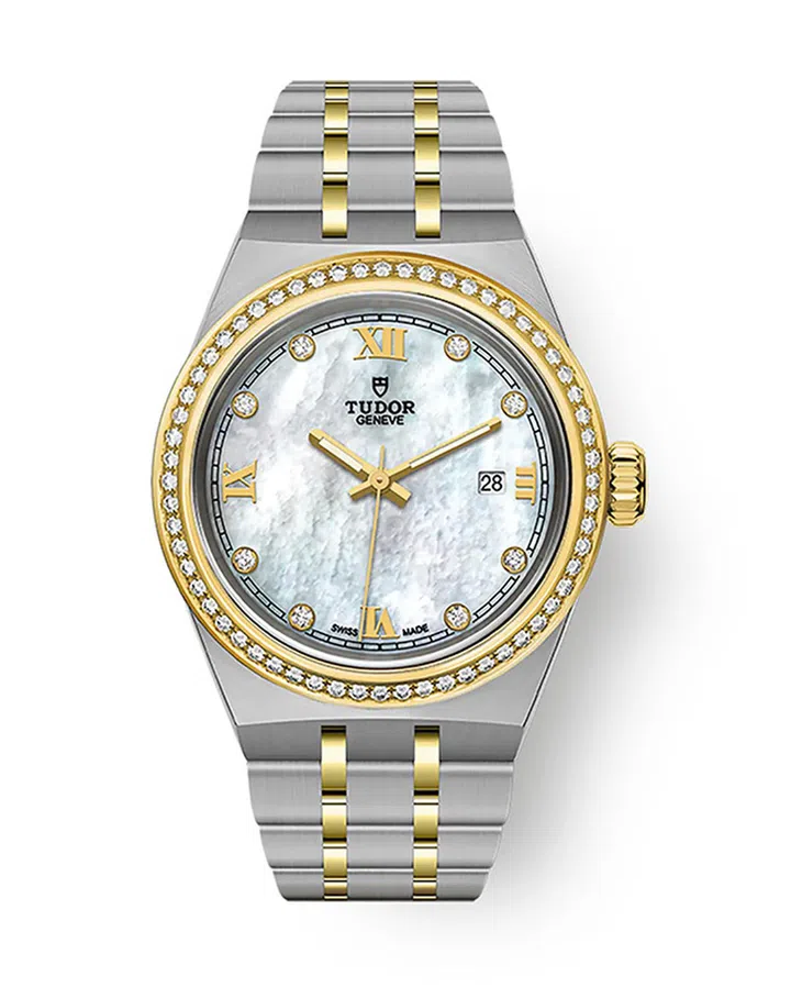 Tudor最初于1950年代使用“Royal”这名称,以凸显其腕表的出众品质。而Royal系列汲取了经典腕表与运动腕表的双重特色,配备一体式表带,自动上链机芯,可谓品质优越又拥有超高性价比。该系列推出316L钢款或316L钢及黄金款表型,并包含28、34、38及41MM四种表径可选。其中,搭配镶钻外圈的28MM表款,设计更显女性魅力,双色配色搭配一体式“五链节”表链,在工作、社交场合佩戴都大方、优雅。
