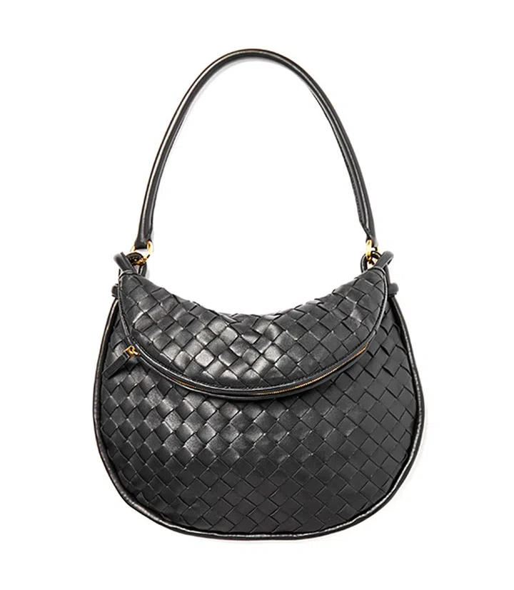 这款Gemelli手袋以新月形小袋为特点,其弯曲设计增加了手袋的层次感。袋身采用品牌于1960年代首次开发的intrecciato编织技术来增强皮革耐用性,同时其作为低调的“品牌标识”,也是quiet luxury的体现。