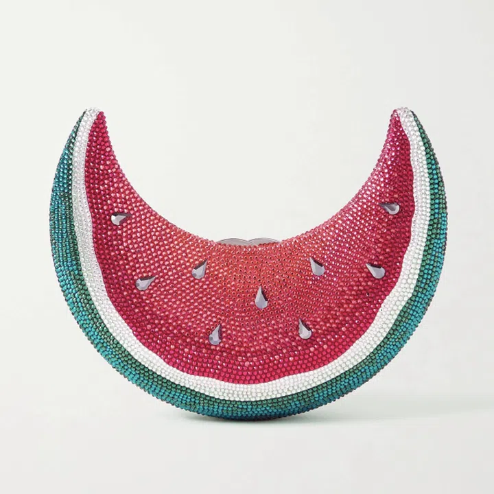 西瓜造型的闪亮手握袋,适合打造活泼性感的夏日派对造型。周末晚上带它出去喝杯小酒,或者度假时带它去海边拍照,都是时尚又有“幽默感”的话题款式。
