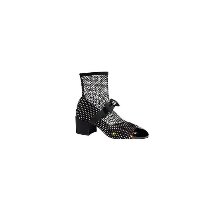 可记得几年前风行一时的袜靴设计?不过Chanel用闪亮的水晶渔网袜设计重新演绎,既保证鞋款时尚抢眼,又让它更加舒适实穿。