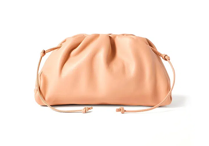 Daniel Lee打造的The Pouch手握袋,是他出任Bottega Veneta创意总监后推出的首批设计之一——自2019年春季首次亮相以来,这一袋款已经推出了多种颜色和尺寸。手袋拥有聚拢的、云朵般的外形,曲线柔软,触感舒适,跟“柔和桃”的特点很相衬。