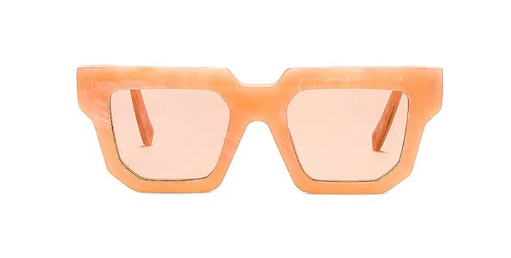 Gia Borghini与超模Rosie Huntington-Whiteley的联名款式,采用了独特的几何形状设计、大胆的框架线条以及柔和的桃色调。无论是搭配休闲装扮还是正式服饰,都能为整体造型增添一抹别致风情。