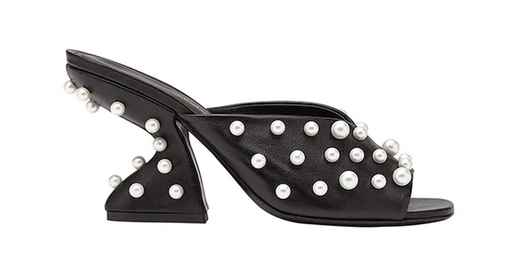 白+黑的经典搭配,采用珍珠元素做装饰,结合超有雕塑感的鞋跟造型,设计精美又有艺术感。