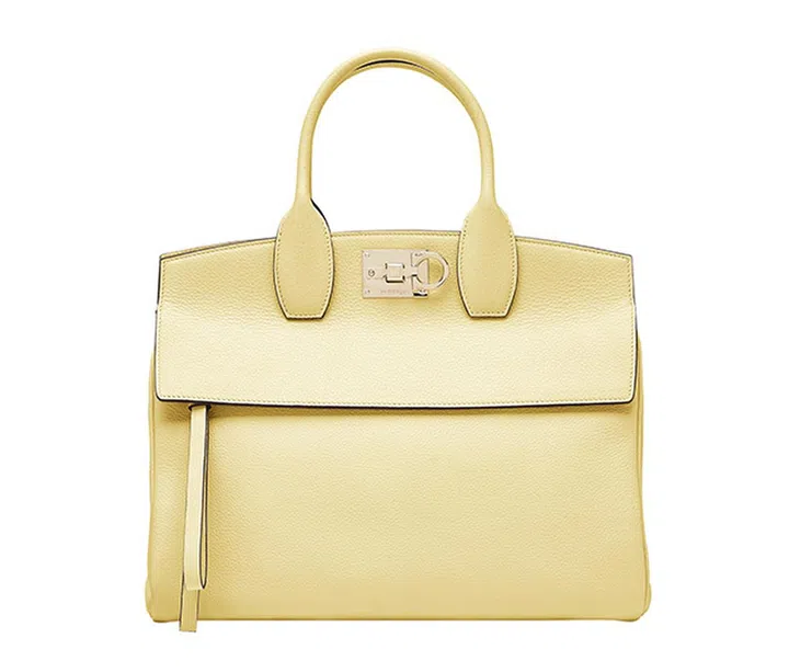 这一季的色彩包括Hedren Green, Vertigo Mauve, Technicolor Yellow(如上图), Lobster Mousse及Bodega Bay Sky等等,贯穿男女装系列。拎上这款黄色调的经典Studio手袋去上班,让工作日的心情也明媚起来。