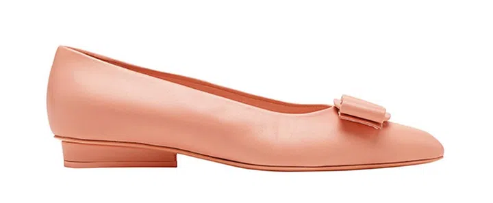 品牌的新款Viva芭蕾舞平底鞋,以柔软羊皮打造,装饰同色系手绘金属牌和立体浮雕标识。同时以略呈锥形的鞋口搭配超大蝴蝶结,泪滴形鞋跟灵感源自Richard Serra线条玲珑的雕塑作品。