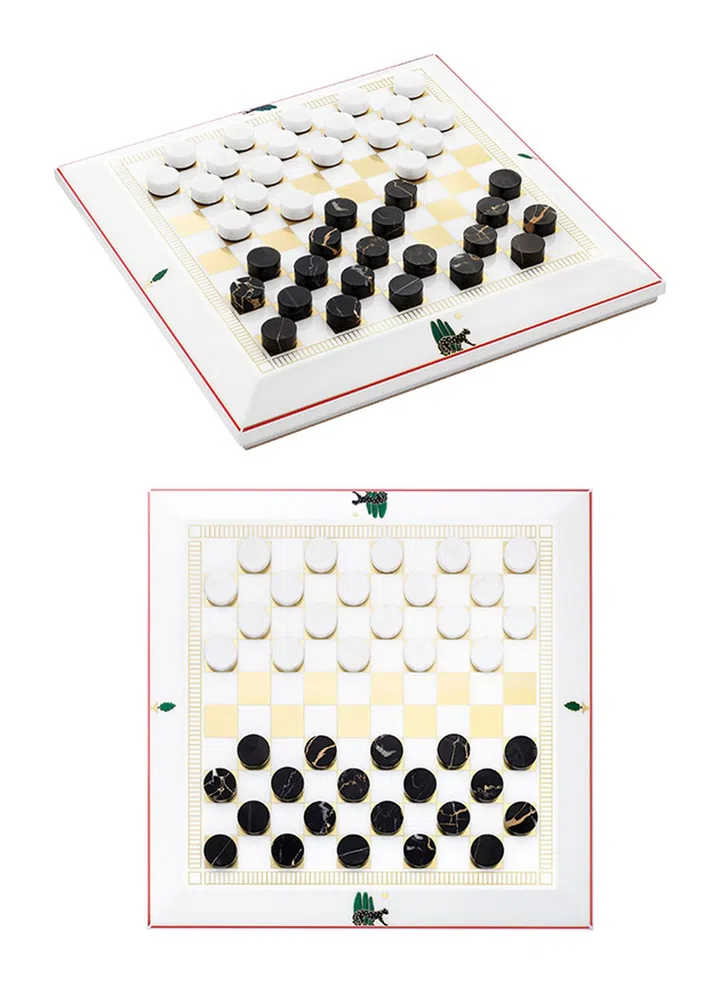 Cartier扩张去年推出的生活艺术系列并取名为Art de Vivre(生活的艺术),这款奢华精致的跳棋组合即其中的新成员。喜庆、有趣、珍贵,这款跳棋以最高贵的大理石打造,其金、白、黑的典雅配色犹如艺术品,摆在家中装饰着或拿出来与客人对弈都显得大气非凡。