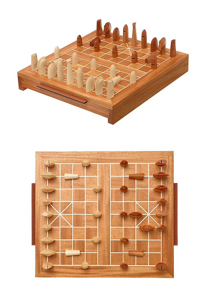 Hermès推出精简奢华中国象棋,棋盘采用实心天然桃花心木和梧桐木制成,交错的木材纹路编排组装形成棋盘上的格纹。简约的手工雕刻棋子灵感来自品牌的萨马尔坎德象棋,棋子底部还刻有品牌标志性的Clou de Selle雕刻,设计细节精致考究,完美延续品牌的奢华质感。