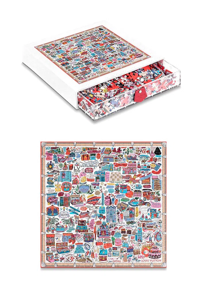 拼图无聊没创意? 那你就错了。为庆祝品牌创始人路易·威登先生的200年诞辰,Louis Vuitton设计了这款拼图。灵感来自品牌经典怀旧的真丝围巾图案,每一块拼图都充满着丰富多彩的品牌传奇历史与经典元素。拉开装有529块拼图的plexiglass抽屉盒,一块块的拼图将拼出一副25cm x 25cm的插图,非常适合家庭互动,一起拼凑。