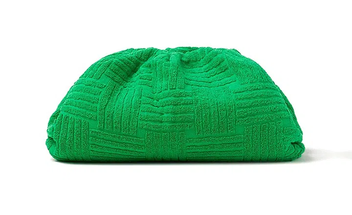 Bottega Veneta在新一季采用绿色毛巾布重新演绎高人气 “Pouch”云朵包,推出这款别具波普艺术气息的新作。手袋面料的细腻凸纹,还创意性地演绎了品牌的标志性Intrecciato编织工艺。