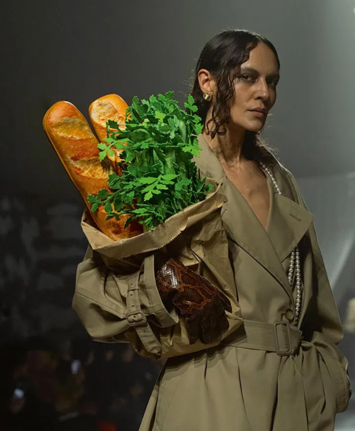 Moschino的“意大利香芹”趣味手袋(YES!), 是纯粹的清新又青翠。不过这款包包其实是三合为一:包括一款“法棍”包(PU材质),“香芹”包(PU材质),以及外面的这款“纸袋”包(印花纸布),单独使用或凑在一起都趣味十足。