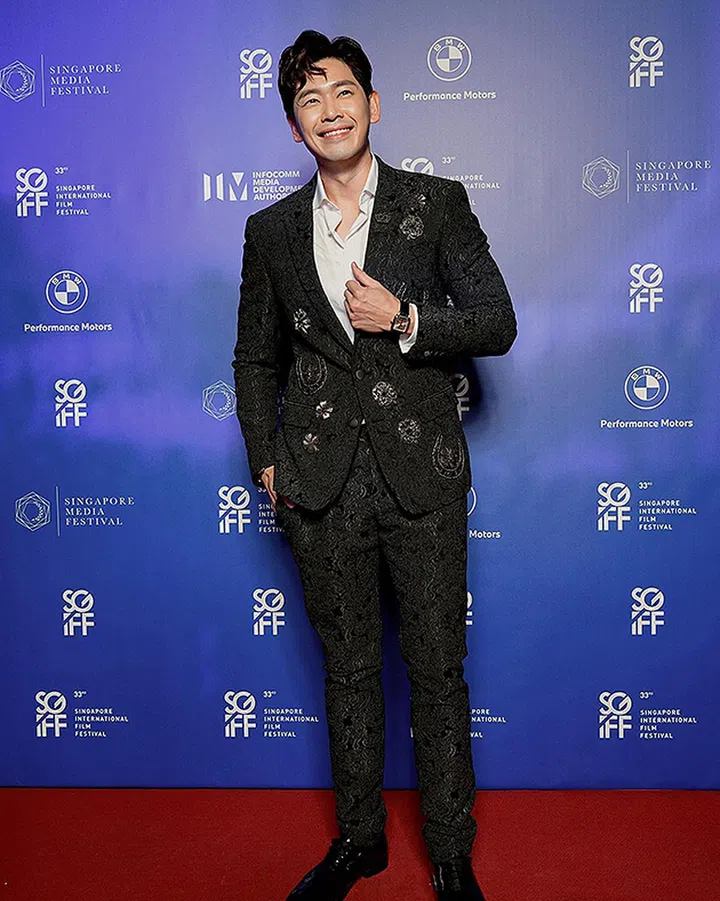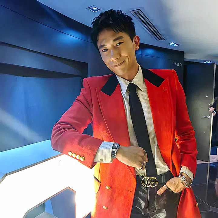 陈泂江穿着色彩抢眼的Gucci红色西服,风度翩翩充满文艺气质。记得早前他出席GUCCI BEAUTY彩妆派对时,选穿龙纹装饰的黑色西服,内搭鲜亮绿色衬衣,造型也很大胆!