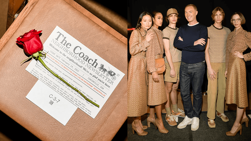 开始为系列准备动笔时,Stuart Vevers常以一种感觉(feeling)开始。Coach 2022秋冬系列的感觉是爱。他表示:“为了表达这爱的感觉,这次2022秋冬系列探讨浪漫与坚韧之间的张力,以此从新审视Coach的传统。“ 打造一个坐落在美国某处怀旧世界,结合现今的能量以及怀旧的流行文化,并透过宽屏镜头呈现的概念深深的吸引着、启发着Stuart Vevers。