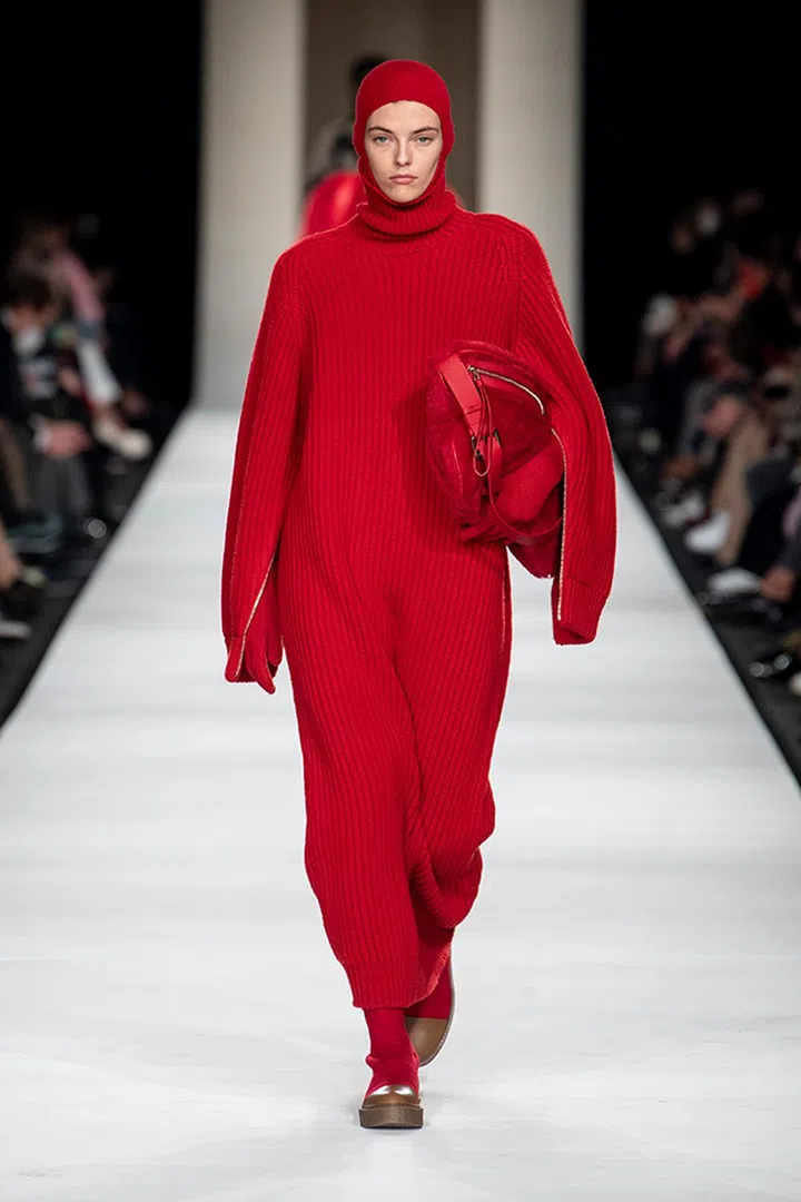 Max Mara已经不是第一次用冲击性纯色给人视觉刺激了——谁会忘记2019年秋冬秀由三个模特开场的抢眼亮色造型?这次的纯色造型如红、橙、黄色,相信也会掀起新的热潮。