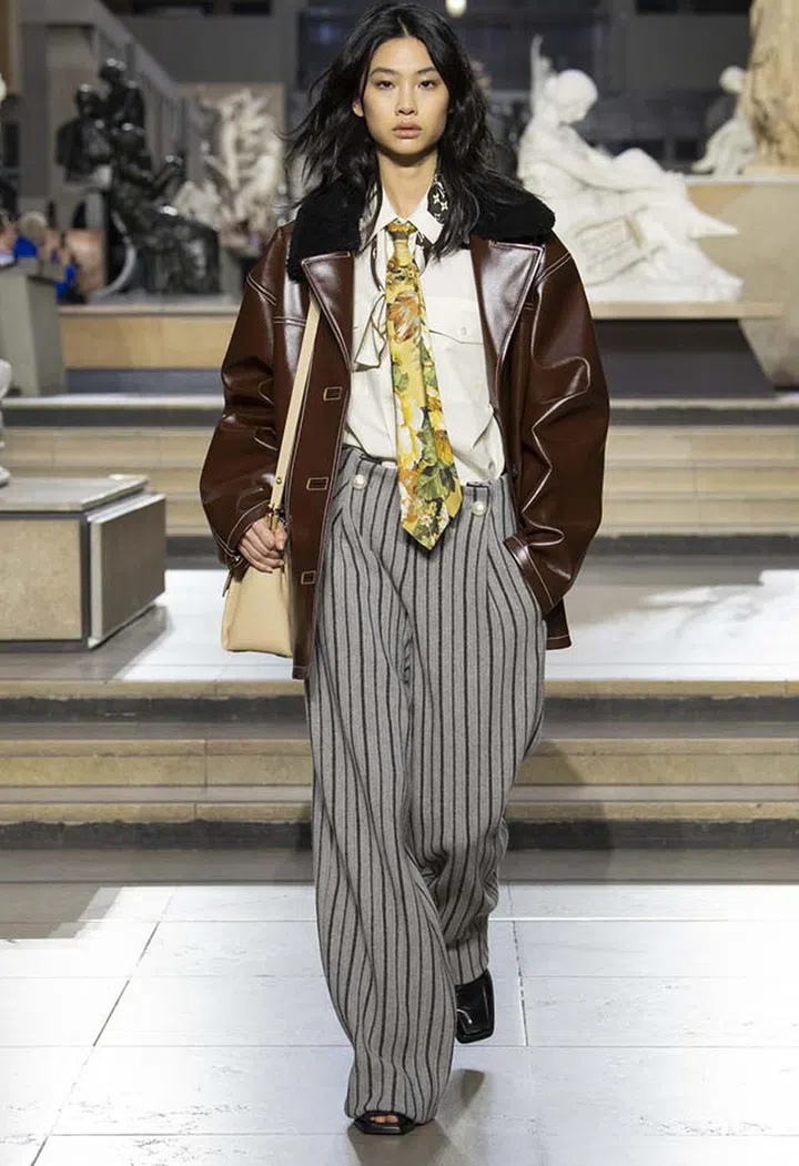 去年以韩剧《鱿鱼游戏》大红的郑好娟,其实走红前已是Nicolas Ghesquière御用模特,因剧集大热后更成为品牌官方大使。这次以帅气皮夹克+长裤look为秀开场,其时尚地位不言而喻。