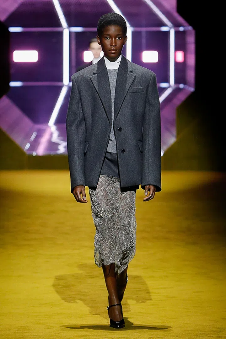 Miuccia Prada表示:这个系列是关于女性的历史,人类的历史,而不是时尚的历史。秀前,品牌还在IG发布模特们的童年影片,透过她们的历史向“专业模特致敬”。走秀的模特阵容也很强大,从Kaia Gerber、Sora Choi等新生代模特到20多年前为品牌走秀的Erin O’Connor, Liya Kebede, Elise Crombez, 及Hannelore Knuts等,纷纷齐聚一堂。