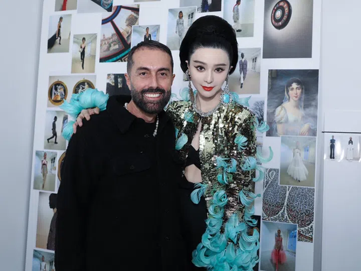 范冰冰受邀出席Giambattista Valli 2023秋冬秀,还与设计师Giambattista Valli本人合影,绝美颜值全然不像41岁。
