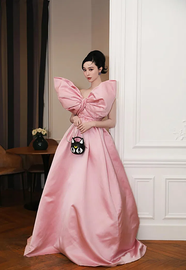 范冰冰出席珠宝品牌Yun Yun Sun与LuisaViaRoma合作的胶囊系列配饰在巴黎举办的晚宴,穿着一袭来自Giambattista Valli 2022年春夏高级定制系列的蝴蝶结礼服,并搭配Jimmy Choo美少女战士联名系列手袋,造型梦幻又可爱。