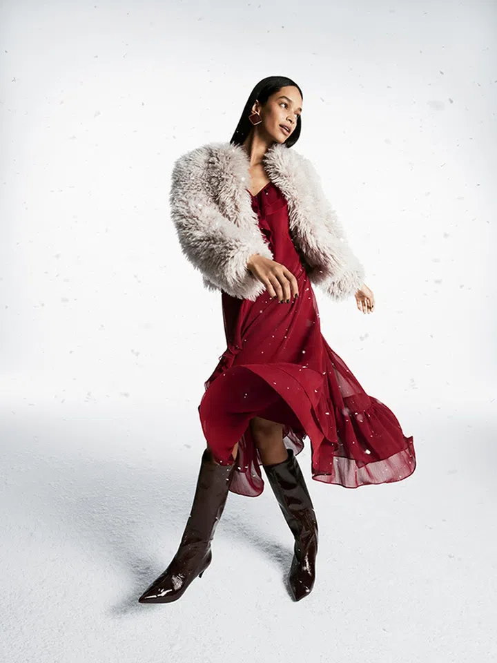 红色作为圣诞节的经典色,怎么可能错过?这款Marks & Spencer的红色连衣裙,浓郁的莓果红色充满节日气氛,搭配细腻的蝴蝶结和丝带设计,既具浪漫感,又时尚十足。无论是送给喜欢参加节日聚会的朋友,还是优雅的妈妈,它都能让她们在节日派对上成为全场焦点!