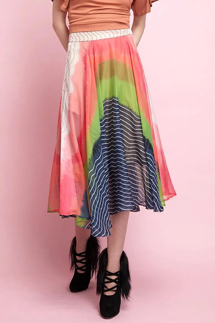 这身来自本地品牌Reckless Ericka的中长裙,采用轻盈的雪纺材质缝制而成。裙子外层饰以大胆迷幻印花,薄纱面料的层叠更是营造出丰富的质感。裙子本身也能有效地修饰身型,度假期间或平日穿搭最为合适。