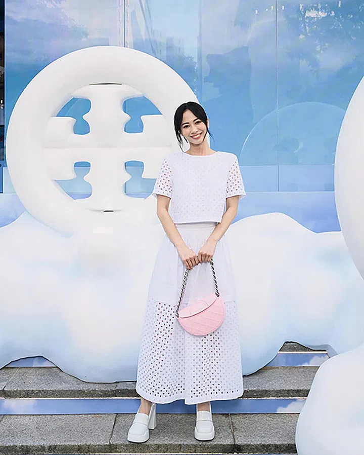 早前4月Tory Burch在本地举办时尚活动,泰国男星Dew、Nani及Tory Burch女士都到场出席。当然也有不少本地艺人前来助阵。当时Bonnie在快闪店同样以一身清新的白色裙装亮相,搭配品牌高人气的Fleming Soft Crescent粉色迷你袋,造型超有“初恋感”。