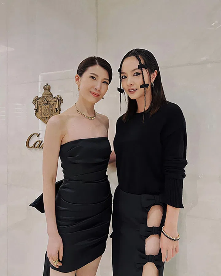 2023年暄婷和欧萱受邀出席Cartier全新“咖啡豆”珠宝系列Grain de Café的发布活动,以暗黑又可爱的蝴蝶结元素造型亮相,并以侧面露腿的设计展露小性感。