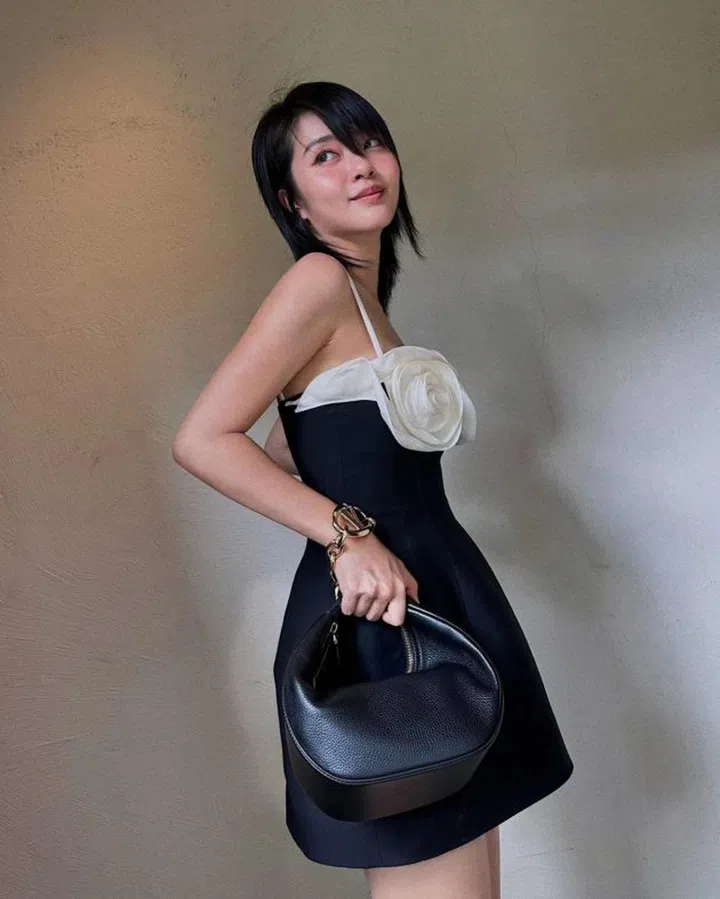 黄暄婷穿着Valentino的花卉装饰黑白连衣裙,并搭配品牌的VLogo Moon手袋。去年她也曾穿过玫粉花卉短裙+黑西装的Valentino造型,采用立体缀饰(如花卉、心形、蝴蝶结等)元素的服装,也常常给人很减龄的玩味视感。