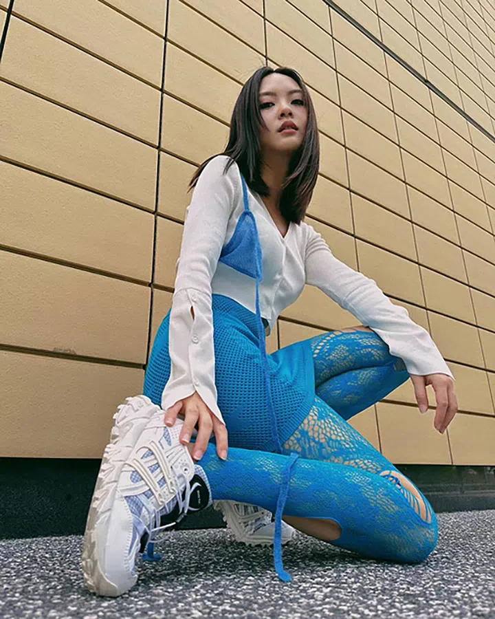 喜欢色彩的黄暄婷,这身蓝白造型既醒目又清新,犹如“蓝天白云”般养眼。学她用性感蕾丝挖洞彩袜搭配球鞋,让运动造型更有趣味。