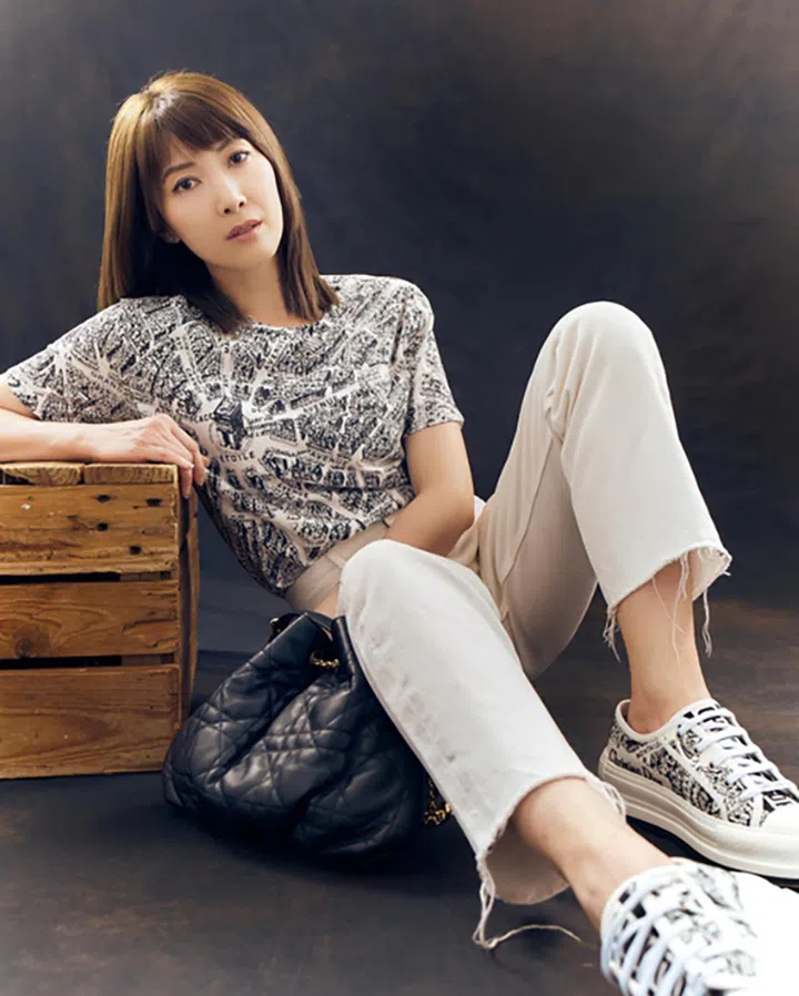 2023年春夏Dior推出Plan de Paris胶囊系列,从品牌1950年代一条印有巴黎地图的丝巾撷趣灵感,将巴黎街道和地标呈现于一系列服饰、手袋及鞋履上。穿着醒目印花的欧萱,选择搭配淡雅的白色长裤及袋型柔软的黑色Bucket手袋,以满满松弛感演绎醒目时尚单品。
