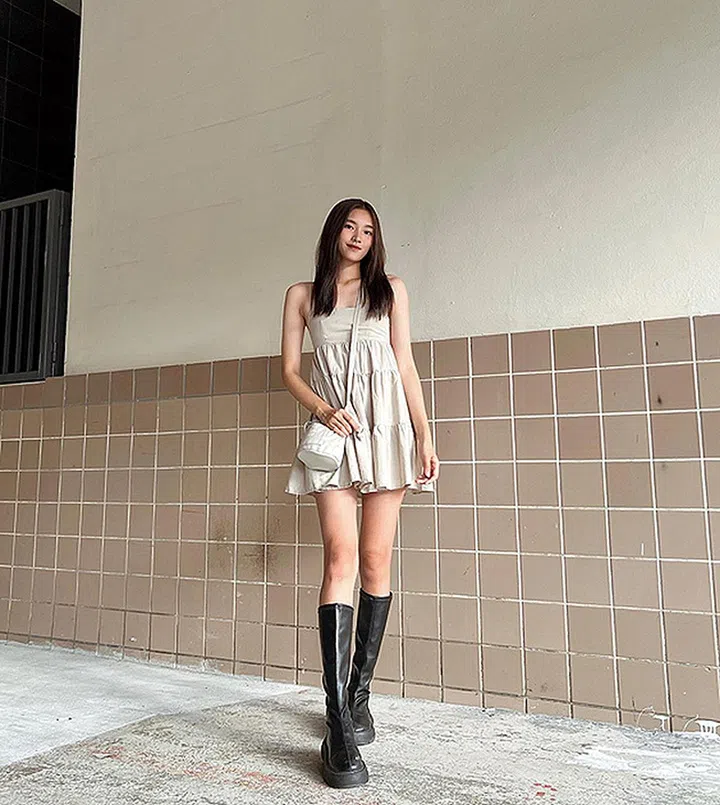 还把长靴雪藏在鞋橱,只在秋冬旅行时穿?快学叶佳昀拿出来搭配迷你连衣裙——也是时下流行的网红穿搭哦。刷刷小红书,很多时尚博主都爱“反季节”穿搭。比如用针织帽搭背心在夏天穿,是不是就比搭配冬装更有潮味?
