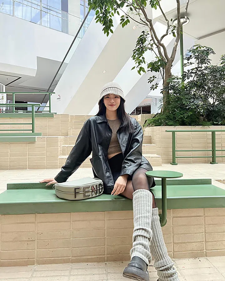 Gen Z一代深受社交媒体影响,常常通过IG、TikTok、YouTube等平台追踪她们喜欢的偶像,也会关注明星的穿着推荐、时尚搭配和购物建议,从而受到直接或间接的影响。小编不知叶佳昀是否喜爱Blackpink,但她的穿搭中常常可见Jennie的影子。比如这身造型中的袜套,就很有Jennie的Balletcore风格。