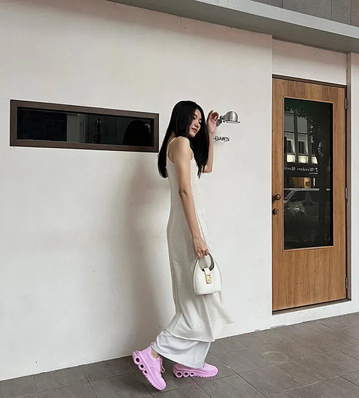 都说Gen Z的时尚风格有一些显著的特点,比如倾向于打破性别、种族和身体类型的界限,追求自我表达、推崇个性化。同时,也有很多Gen Z的服装倾向于简单和简约的风格。如何用简单服装表达个性?比如Gen Z倾向于通过配饰、细节或少量的亮色来凸显风格(叶佳昀就选穿独特的粉色Ferragamo球鞋搭配白色造型),而不是通过图案和装饰。