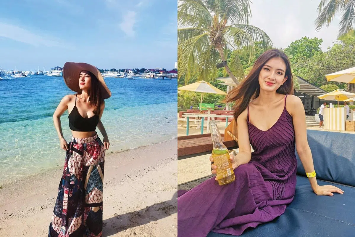 此外,适当露出肌肤,也能平衡高饱和色彩带来的冲击感。洪凌的海边深紫色吊带裙造型,就是个很好的例子。而这时若佩戴耳饰或项链,会与高饱和色彩形成视觉冲突,但巧妙地避开视觉首要关注点,在手腕或脚踝进行点缀,则更加恰当。