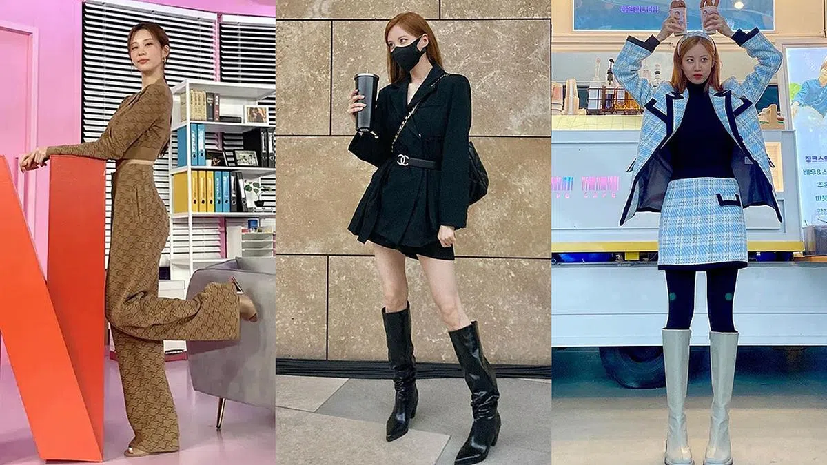 徐玄虽然“成长”了,但时不时仍然会穿上自己熟悉的韩系女团经典穿搭:粗花呢外套搭配同款迷你短裙。徐玄选择以黑色上衣与袜裤进行搭配,诠释出更为矜持,但又不失质感的少女装扮。