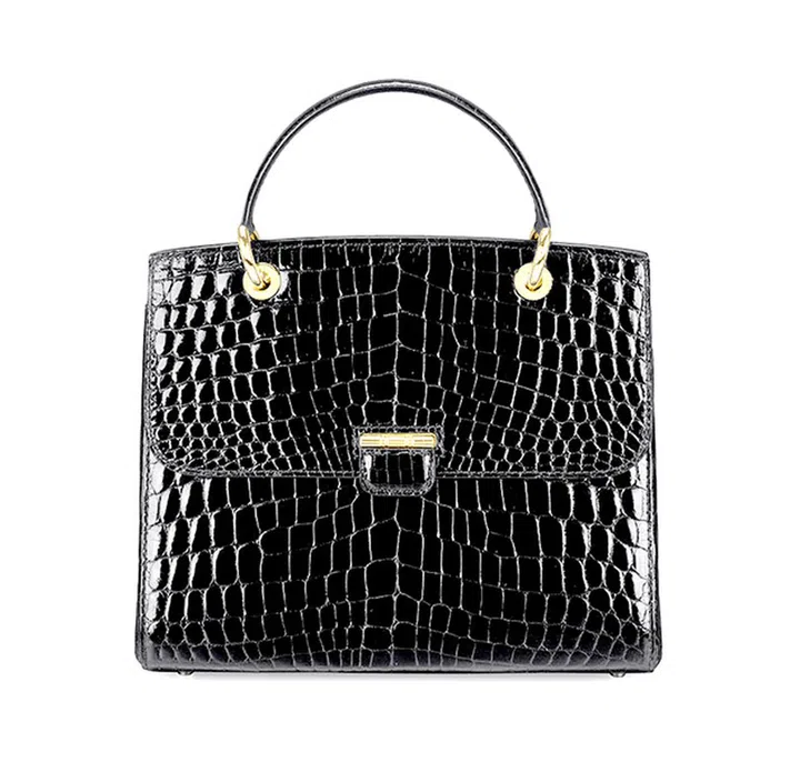 1938 年创于新加坡的KWAPEN,以鳄鱼皮手袋起家并凭借其精湛工艺赢得顾客喜爱。品牌采用100% crocodile或alligator鳄鱼皮制作手袋,其中这款黑色手袋是以Niloticus皮革打造。