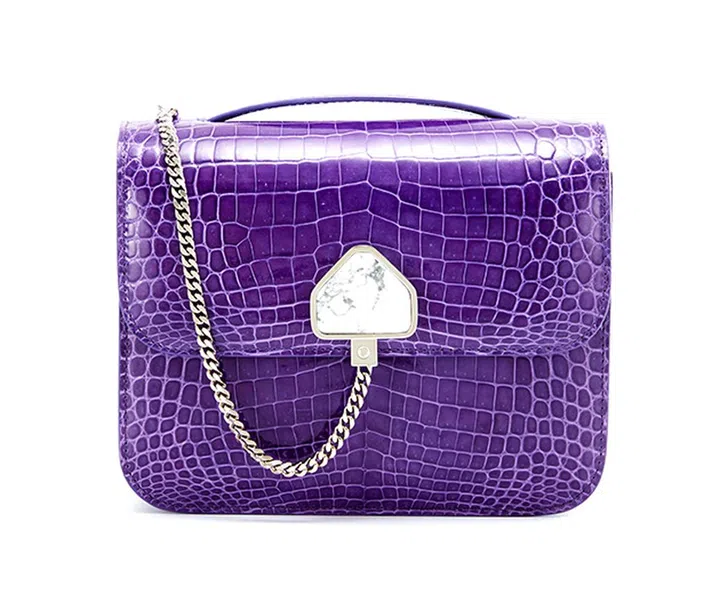 珍稀皮革通常给人奢华、高贵的感觉(上图包款为Niloticus皮革), 但ETHAN K却从现代人的生活形态撷取灵感,将手袋打造得格外日常、轻松。品牌擅长应用鲜亮色彩,这款手袋的颜色,也正好是今年大热的紫色调/长春花蓝哦。