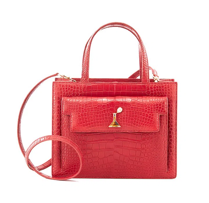 鲜亮浓郁的的红色调结合有趣包扣细节(灵感来自实验室试管),既保持手袋的经典感及工艺美,又彰显大胆好玩的前卫时尚态度。该手袋也使用Niloticus皮革,并以虎眼石装饰包扣。