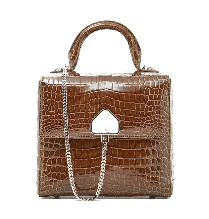 本地设计师Ethan Koh打造的同名皮具品牌Ethan K,也以做工精湛,品质卓越的鳄鱼皮手袋闻名国际(上图包款为Niloticus尼罗鳄皮革)。其最新推出的Mad Lab系列,以充电器般的包扣设计当包扣,为奢华手袋增添时代风格。