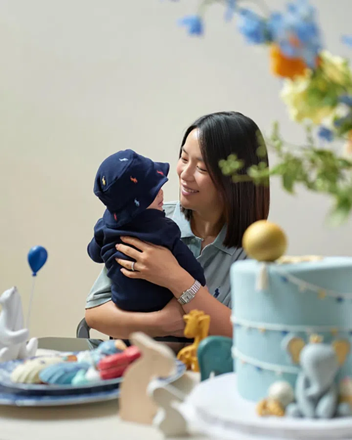 今年1月30日刚刚升格妈妈的林慧玲,不仅和兔宝宝一起共度农历新年和她的第一个母亲节,本月也晒出儿子庆百日的照片。艺人朋友们纷纷送上祝福,并昵称她的宝宝为“Baby M”。上图林慧玲穿着和蛋糕同色的浅蓝衬衣,并搭配Longines Mini DolceVita精钢腕表,和亲友们一起共度欢喜时光。