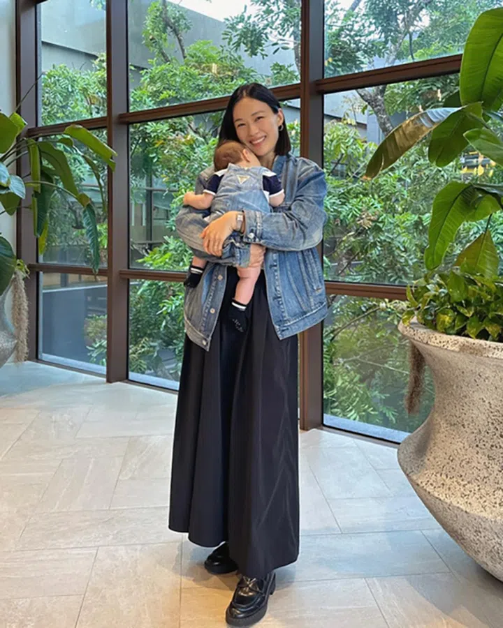 母亲节,和宝宝一起穿“母子装”也超有爱!当然你未必真的需要购买母子/母女配套的服装,像林慧玲这款选择同样材质如牛仔,或者穿着相近材质和色调的造型,也能达到相似的效果。