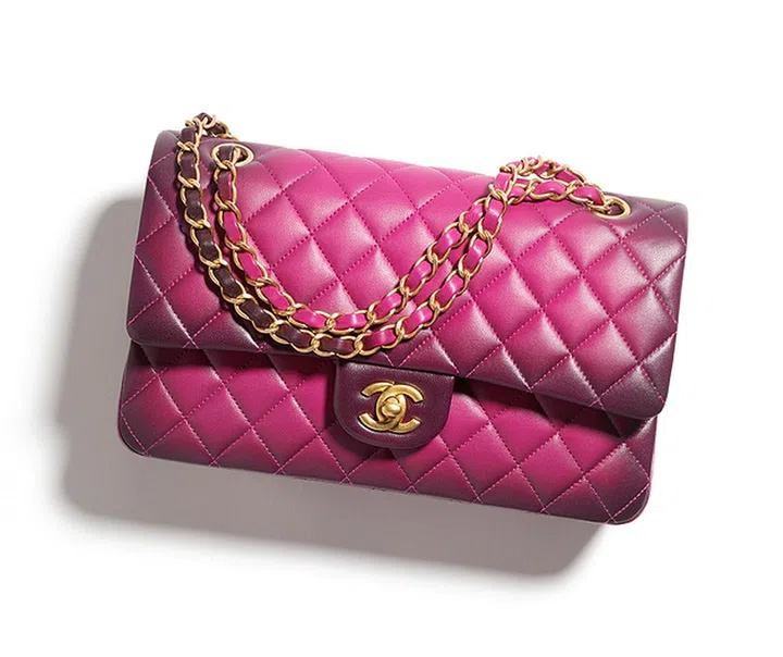 你我惯性称为Classic Flap的法国品牌Chanel双“C”搭扣+翻盖链袋(在若干年前已易名为11.12),这款包包来自今年Métiers d'art系列——该系列手袋设计融入英伦风情,并推出了亮眼的波普色彩及浪漫的薰衣草紫等,还包括迷人的渐变色款式,造型优雅又吸睛。