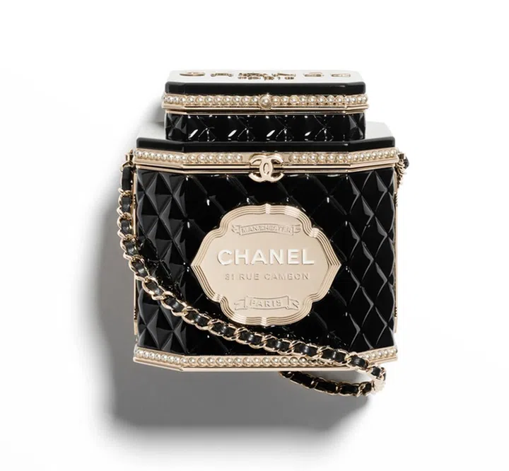 作为“小香包”的死忠,总要有那么几款不太实用,但摆起来也赏心悦目的收藏款式。这款双层设计的Tea Box Minaudiere,以树脂、珐琅、人造珍珠及金属制成,既能当作你晚宴上的话题单品,也能作为珍藏心爱饰件的首饰盒。