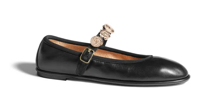 今季以Mary Janes"搭一切"的Chanel,可谓充分为你展现了该鞋型的多样魅力。上图鞋款以柔软羊皮打造,鞋带上装饰造型各异的金色徽章元素,让造型又甜又酷。